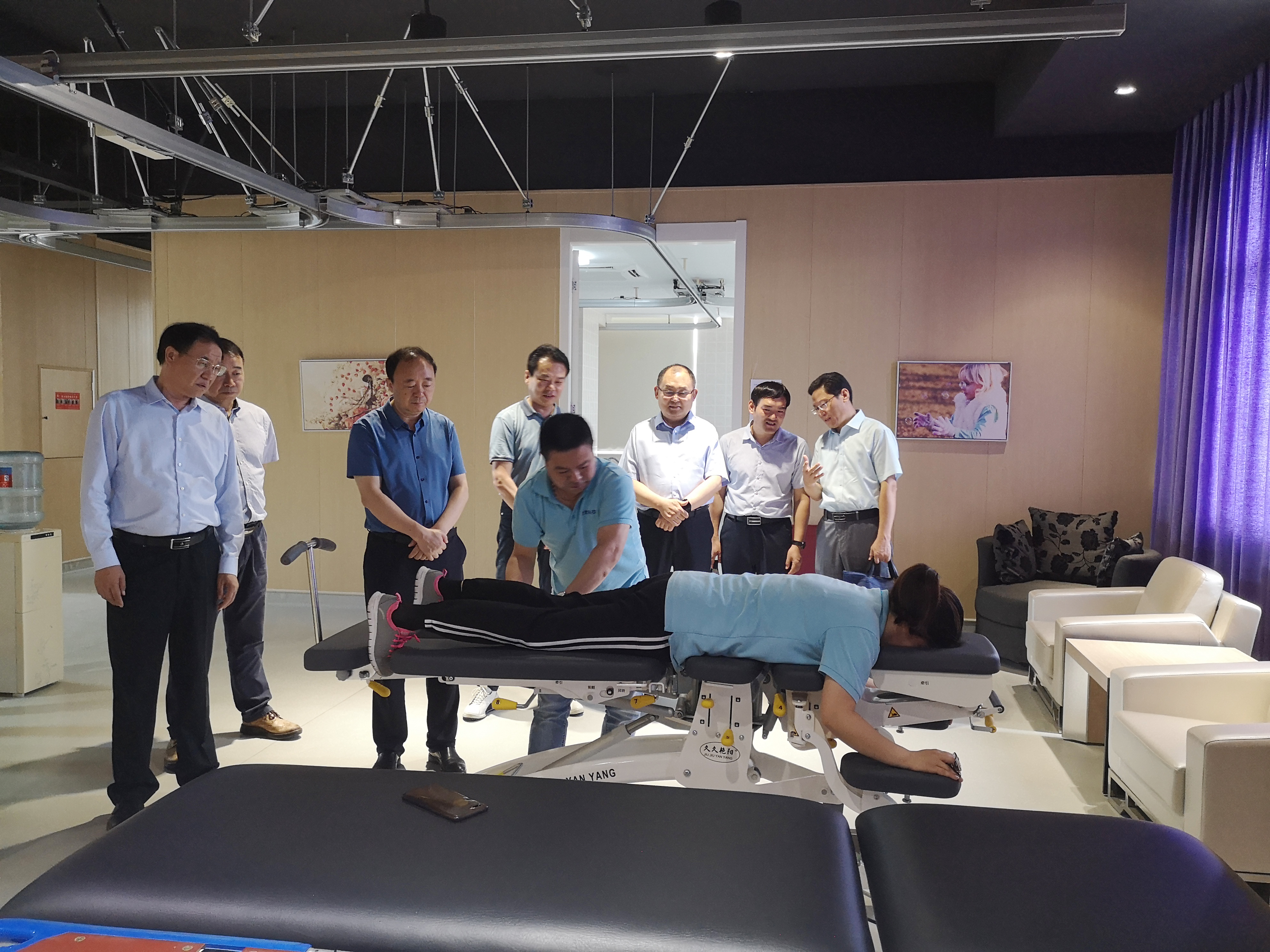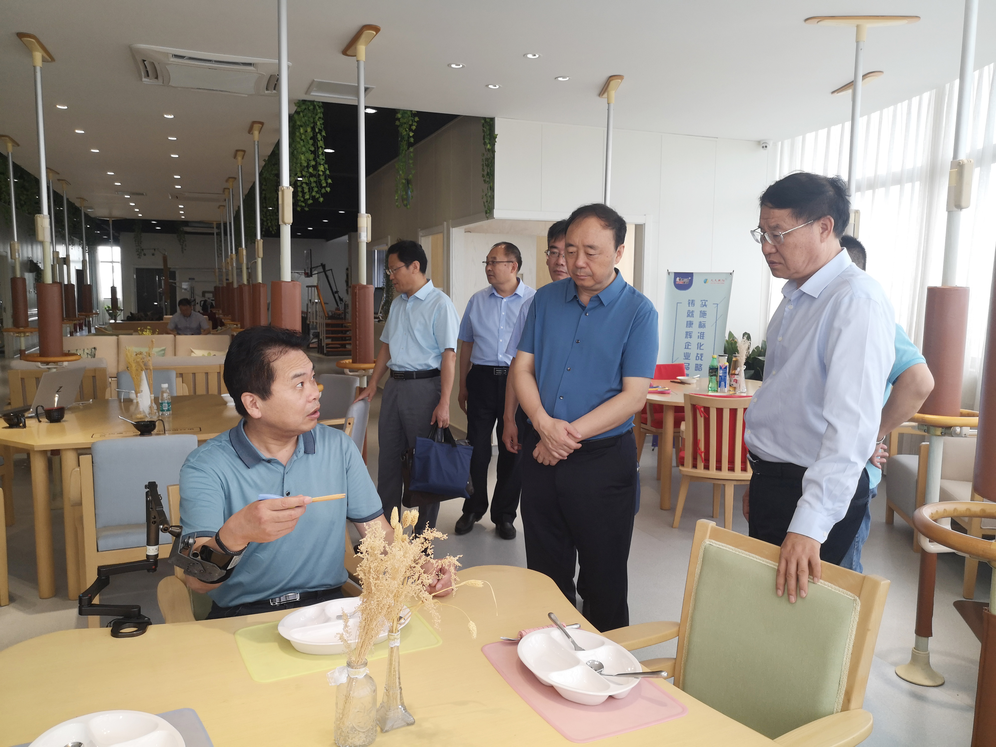棗莊學(xué)院領(lǐng)導(dǎo)一行還在陳利忠董事長帶領(lǐng)下實地參觀了公司展示中心,詳細了解了智慧養(yǎng)老整體解決方案,親身感受了多款輔具產(chǎn)品的功能和特色。